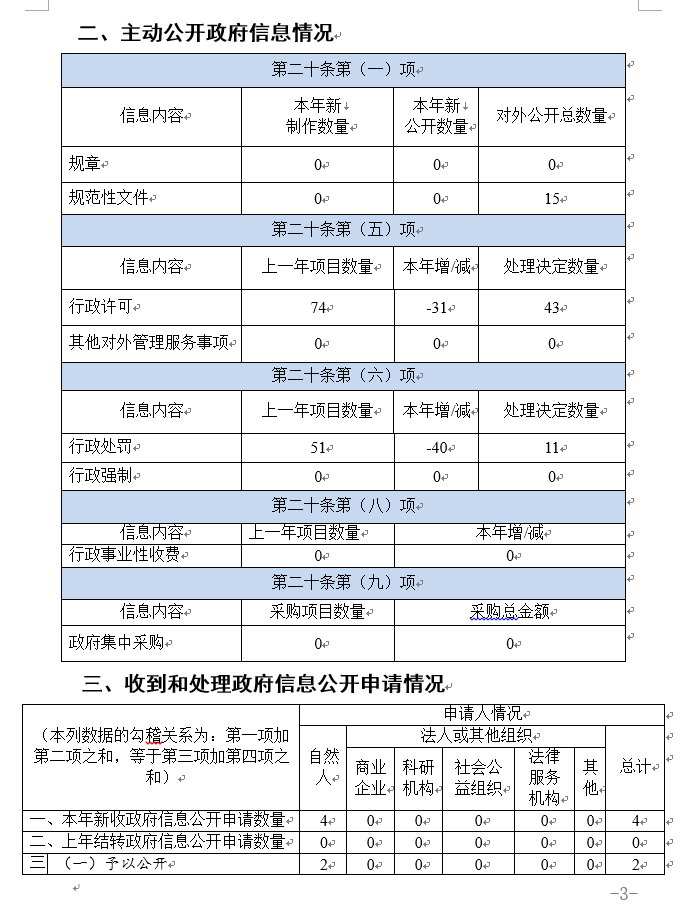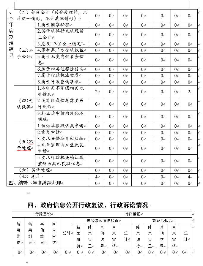 (二)依申請公開辦理情況。2019年度收到4起政府信息公開申請,已按要求第一時間予以答復(fù)。